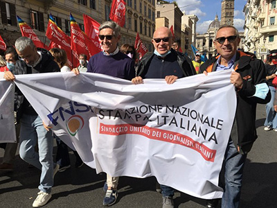 Alla manifestazione anche delegazioni della Fnsi e dell'Usigrai, dell'Ordine dei giornalisti del Lazio, di Articolo21 e altre associazioni. «Siamo qui oggi per manifestare la nostra vicinanza e la solidarietà del sindacato dei giornalisti italiani ai dirigenti e agli iscritti della Cgil dopo l'assalto squadrista alla sede nazionale e per difendere la Costituzione, nata dalla resistenza al nazifascismo, e i suoi valori: la Costituzione della Repubblica fondata sul lavoro, lavoro che in questo Paese si vorrebbe sempre più precario e sempre meno tutelato», ha detto Raffaele Lorusso, segretario generale della Federazione nazionale della Stampa italiana.